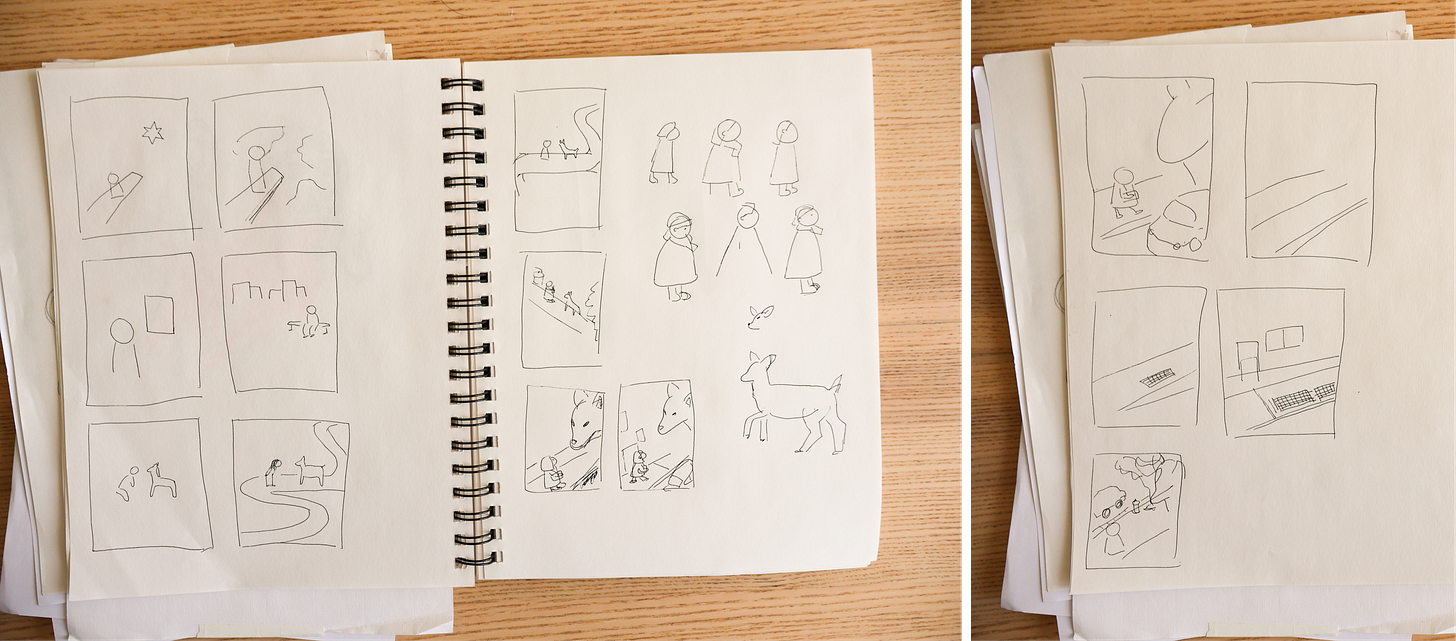 I sketched a few versions of girl-encounters-deer, and I made the deer BIG because Aaron has been encouraging me to play with scale more lol. Then I triedddd to color it but ughghh could not get it right!