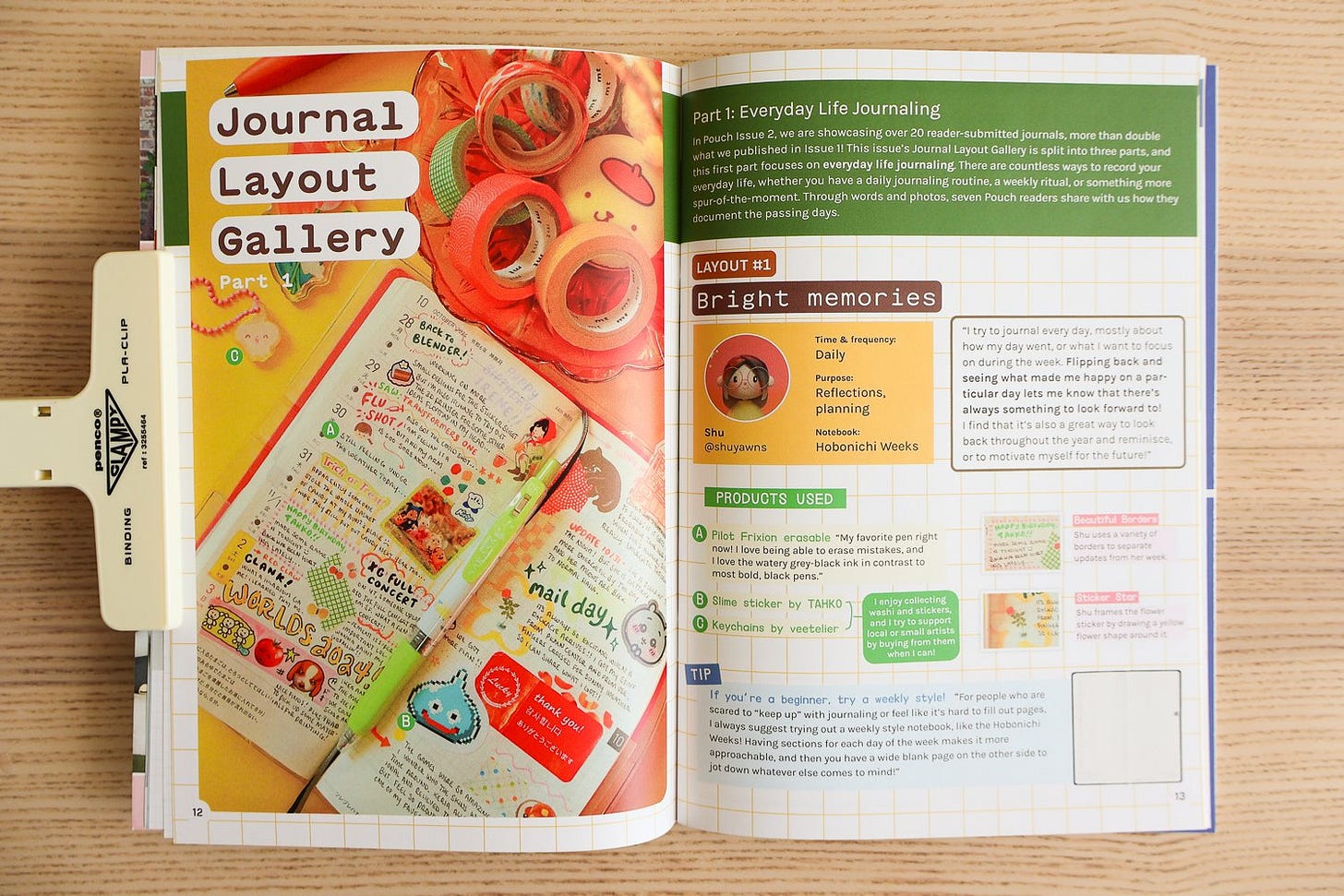 Iâm making Pouch Issue 3 in a team, and so in December, we had a team meeting about submissions. In the meeting, Carolyn and Nikki astutely pointed out that calling it a âJournal Layout Galleryâ was a bit confusing! That was reflected in the Pouch Issue #2 submission results, too: Almost all our layouts were journal layouts, with just 2 planner layouts out of 21.